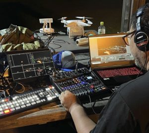 動きの激しいプロレスの試合ですがリモートカメラ1台でのワンオペ配信でした。